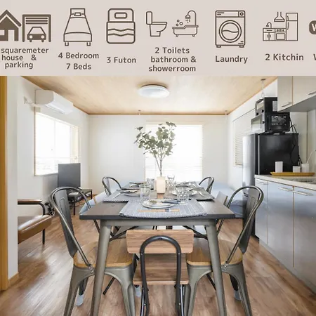 Le logement comprend un balcon et une cuisine entièrement équipée avec une climatisation pour un plus grand confort. Premier suite Yoyogi front detached house comprend 4 chambres à coucher à coucher. Pour assurer votre confort, un bidet, un bain à remous et une douche sont mises à votre disposition à l'appartement. Un sèche-cheveux et des draps de bain sont également présents dans la salle de bain.